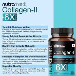 ✔ YOUTHFUL SKIN, HAIR, AND NAILS : Our advanced formula contains essential nutrients like Type II Collagen, Hyaluronic Acid, and Biotin to promote skin elasticity, hydration, and vitality, while also supporting healthy hair and nails.