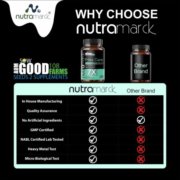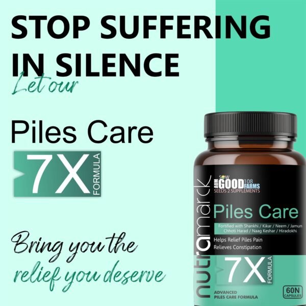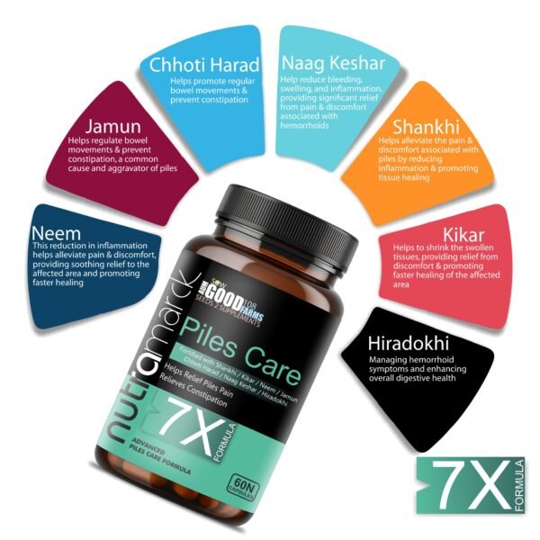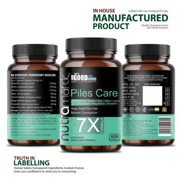 ✔ Natural Piles Relief : Formulated with seven potent Ayurvedic ingredients, NutraMarck Piles Care 7X Capsules offer natural and effective relief from piles and hemorrhoids.