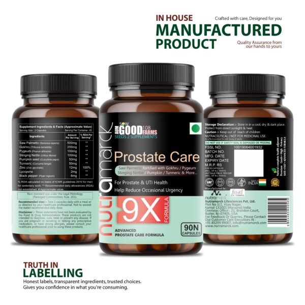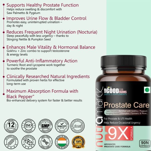 ✔ QUALITY ASSURED, SATISFACTION GUARANTEED : Experience the natural goodness of All-Natural Prostate Care 9X Capsule with confidence. Our products are manufactured in a GMP and ISO – certified facility under strict quality control standards, devoid of Soy, Gluten, dairy & any other potentially harmful additives, ensuring purity, potency, and safety with every batch.