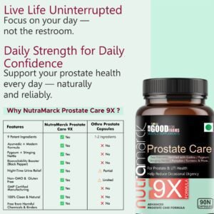 NutraMarck Plant Based Prostate Care 9X Capsule Enhanced with Saw Palmetto | Supports Prostate Health & Manages Enlargement | Support Urinary Function | For Hair Growth | (90 Count (Pack of 1))