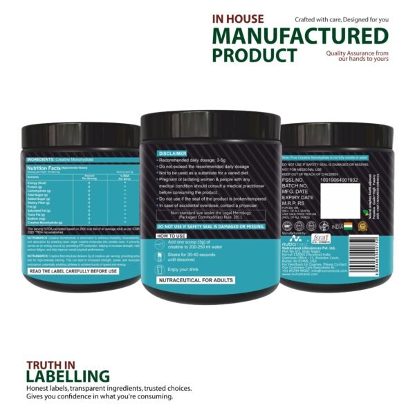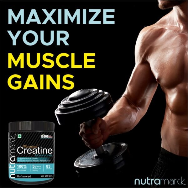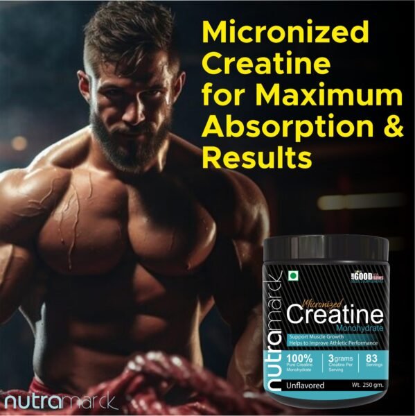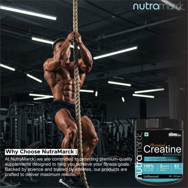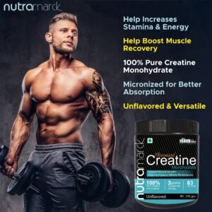 NutraMarck Pure Micronised Creatine Monohydrate Powder | 83 Servings | Enhanced Muscle Strength & Power | Pure & High Absorption Creatine | Fast Recovery | Unflavored | (250g)