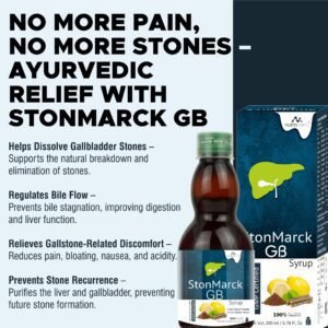 Say goodbye to gallbladder discomfort with Stonmarck GB Syrup, a powerful Ayurvedic herbal formulation designed to help dissolve and flush out gallbladder stones naturally. Enriched with potent herbs like Punarnava, Bhumyamalaki, Gokhru, Kalmegh, and Triphala, this syrup supports healthy digestion, bile flow, and liver detoxification.