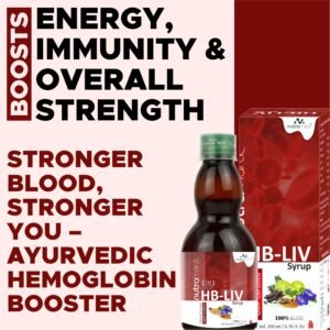 NutraMarck HB Liv Syrup is a powerful Ayurvedic formulation designed to naturally boost hemoglobin levels, improve blood circulation, and combat iron deficiency & anemia. Infused with potent herbal extracts, this iron-rich syrup enhances oxygen transport in the body, fights fatigue & weakness, and promotes vitality & energy. HB Liv Syrup also supports liver function, detoxification, and overall well-being. Made with 100% natural ingredients, it is safe, effective, and free from harmful chemicals. Ideal for individuals struggling with low hemoglobin, poor immunity, or tiredness.